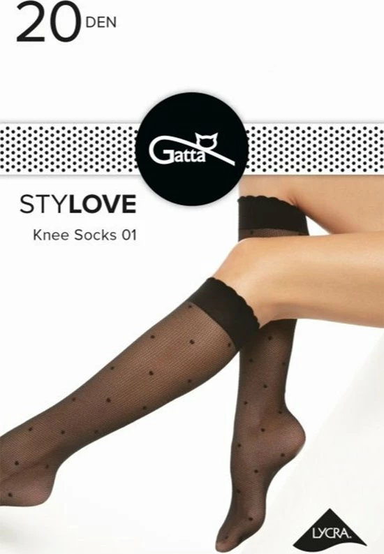 2 pack Gatta micro net kniekousen met stippen Stylove 20 denier, zwart, one size