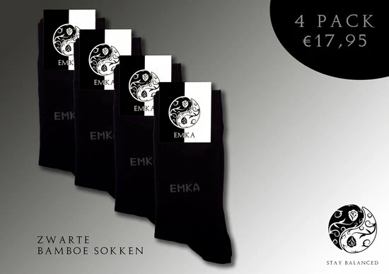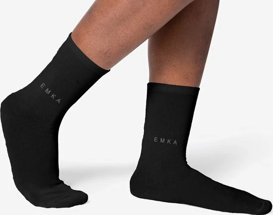 EMKA Zwarte bamboe kousen/sokken is de ideale sok voor de dagelijkse leven. Ze voelen heerlijk zacht aan, dat draagt comfortabel. EMKA bamboe sokken ventileren perfect en dat zorgt voor snelle opname en afvoer van vocht. Door een speciale naadloostechnologie voel je de verbinding tussen de draden aan de voor -en achterkant niet. Zo voorkom je irriaties aan je tenen en hielen. Wat EMKA sokken speciaal maakt is de materiaal uitvoering. Het is namelijk van 83% Bamboe gemaakt. In het kort voelt het alsof je geen sok aan hebt en dat moet je een keer proberen.