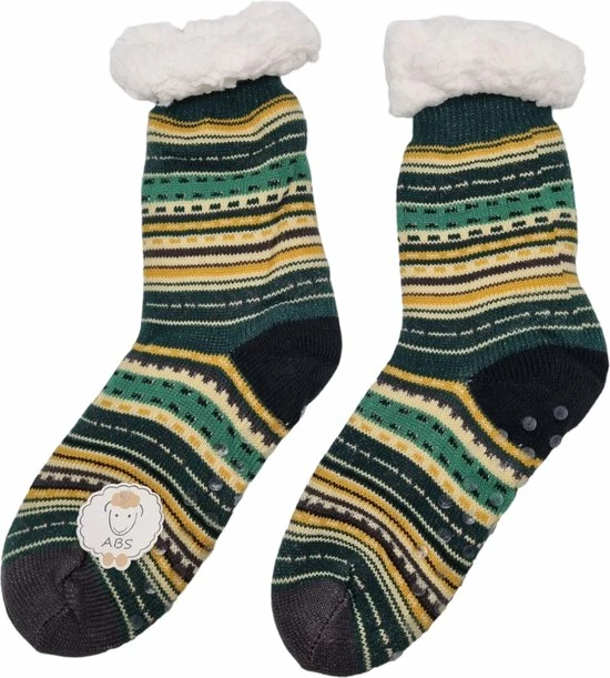Nieuw π Antonio Dames Huissokken – Gestreept Groen – Antislip ABS – One Size (35-42) – Warme Sokken – Huissloffen – Kerstcadeau Voor Vrouwen β¨