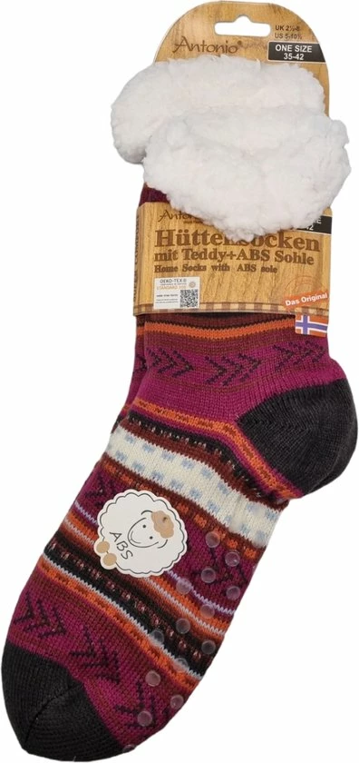 Deze huissokken zijn van binnen gevoerd met super soft teddy materiaal waardoor je voeten lekker warm blijven en bevatten een ABS zool (Anti slip) waardoor u veel grip heeft op de grond en dus niet zo maar uit kan glijden. De sokken zijn 100 % gemaakt van polyacryl en kunnen gewassen worden op 30 graden.