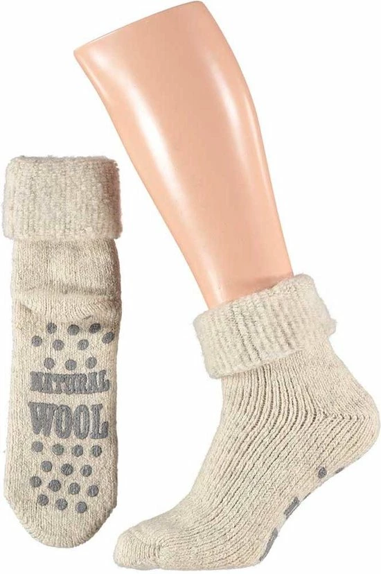 Jouw voeten blijven heerlijk warm dankzij deze gebreide dames huissokken van duurzaam gerecycled wol met een gebrushte binnenkant. Ze zijn lekker dik en zacht en hebben een natuurlijke en huiselijke uitstraling in mooie mouliner basiskleuren. Het functionele antislip profiel op de voetzolen zorgt dat je ook grip hebt op een gladde vloer. De perfecte pasvorm maakt deze sokken bijzonder comfortabel om te dragen. Apollo, your everyday basics.