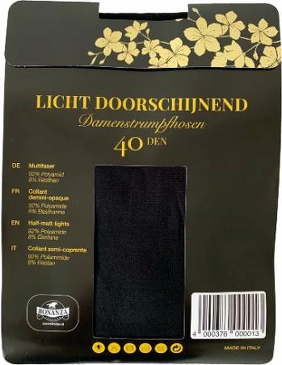 Set van 5 stuks basic panty’s in de kleur zwart. Deze 40 denier panty’s zijn halfmat, licht doorschijnend en hebben een prettig draagcomfort. De panty’s zijn elastisch, sterk en voelen zacht aan. Deze comfortabele panty’s zijn dan ook een ideale basic voor dagelijks gebruik. Geleverd in een voordeelpak van 5 panty’s en verkrijgbaar in de maten S/M (38-40), M/L (40-42) en L/XL (42-44).