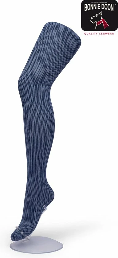 Groothandel 🥰 Bonnie Doon Dames Herringbone Panty 100 Denier Blauw Maat L/XL – Chique Panty – Streepjes Dessin – Brede Boord – Comfort – Herringbone Print – Gestreept – Little Herringbone Tights – Feestelijk – Blue Ashes – BP211908.1 🎁