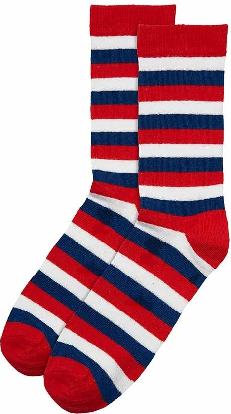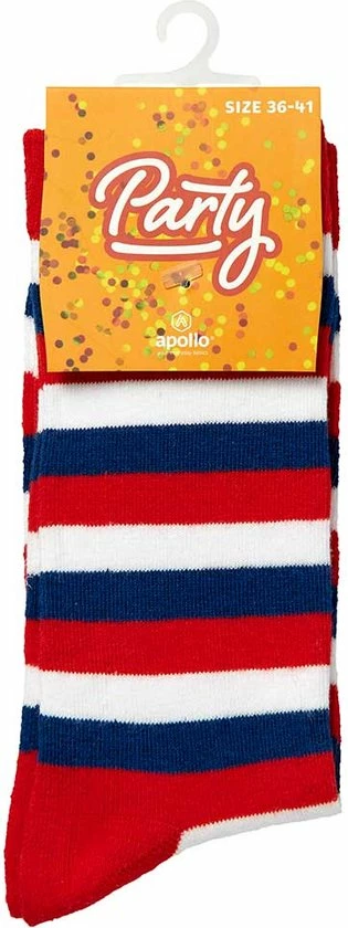 Feest sokken met strepen | rood|wit|blauw 36/41 | Gekleurde sokken | Carnaval | Party sokken heren | Apollo