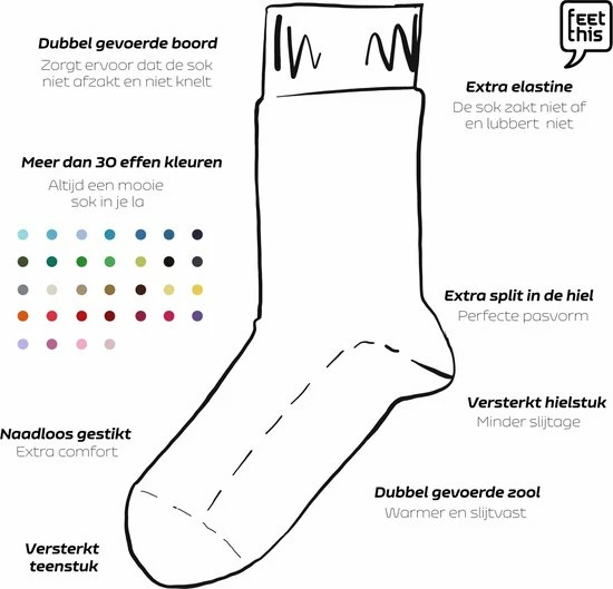 De middellange sokken van Feet This worden geproduceerd in Portugal en beschikken over een verbazingwekkend goede kwaliteit. De sokken zakken niet af, hebben een dubbele zool, verstevigde hiel & teenstuk en ze zijn naadloos.