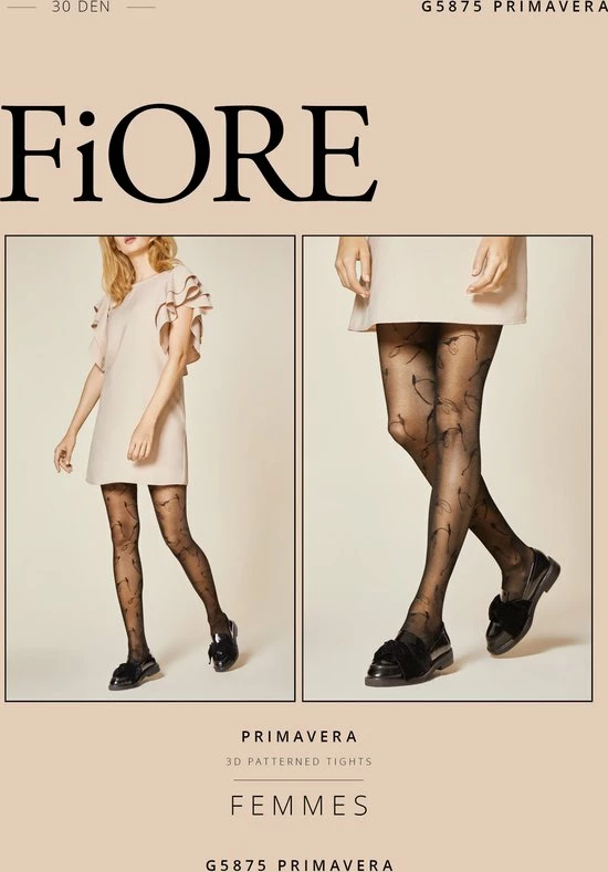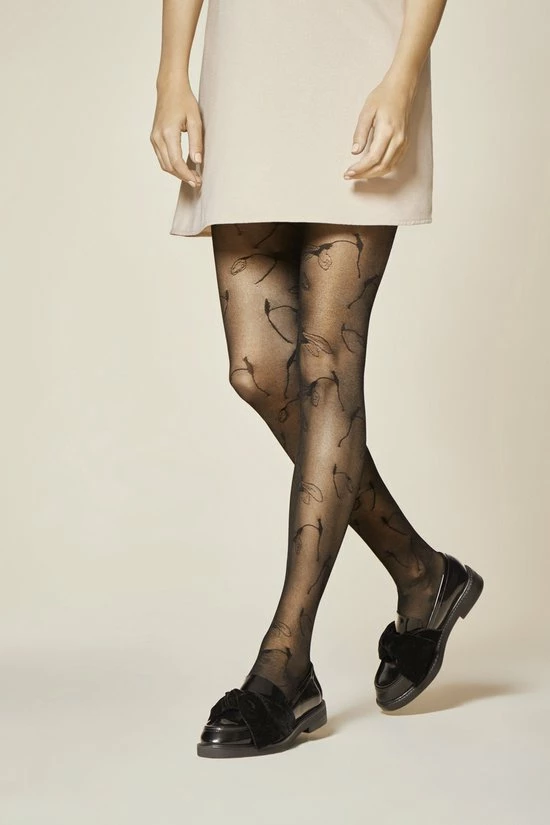 Fiore zwarte transparante 3D panty met bloemen patroon Primavera 30 denier, maat S (2)