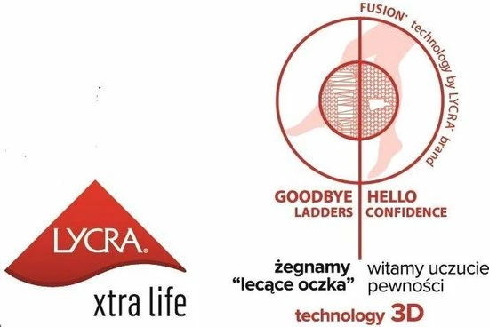 De LYCRAยฎ FUSION โข -technologie helpt kousen resistent te maken tegen ladders, wat de levensduur van de panty kan verlengen. Het geeft vrouwen het vertrouwen en de geruststelling dat hun benen er de hele dag mooi uit zullen zien, en het helpt voorkomen dat perforaties, gaten of krassen veranderen in onaangename runs.