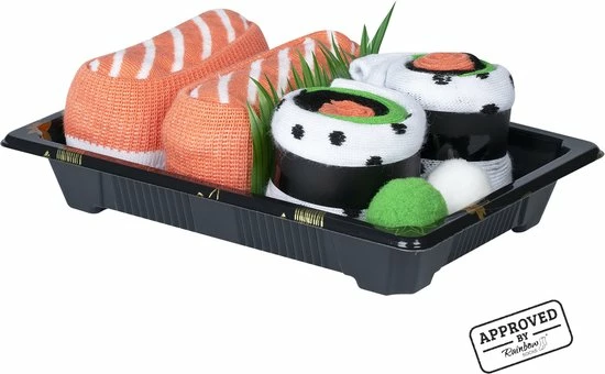 Een uniek kado voor de sushi liefhebber. Twee paar grappige sokken verpakt als een doosje sushi.