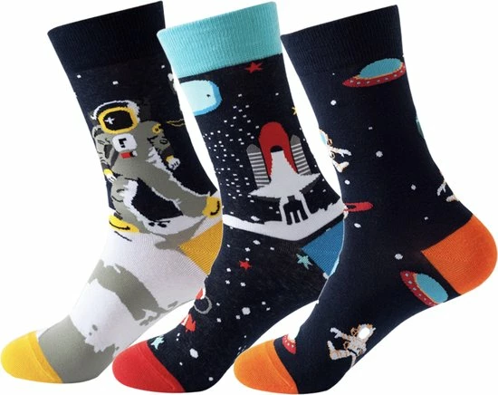 De set bevat 3 paar sokken die allemaal met de ruimte te maken hebben.