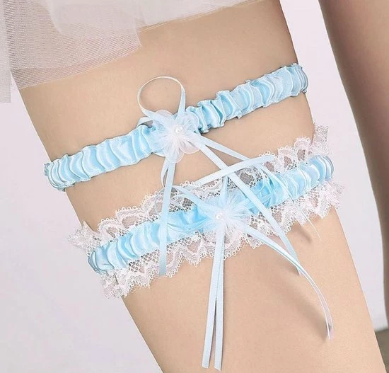 Geef uw bruiloft jurk een sexy aanvulling met deze kanten kousenband met parel. Meerdere kleuren beschikbaar.