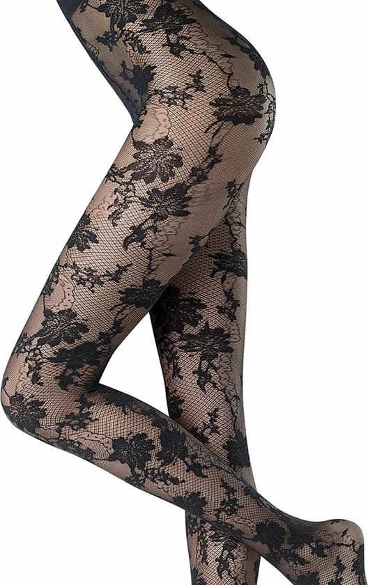 Het bloemen patroon op de panty loopt in zijn geheel vanaf de bovenzijde tot het puntje van de tenen. Tussen de bloemen door is de panty elegant en netjes opengewerkt en dit zorgt voor een unieke, structuur de in de kleuren zwart altijd stijlvol is te combineren.