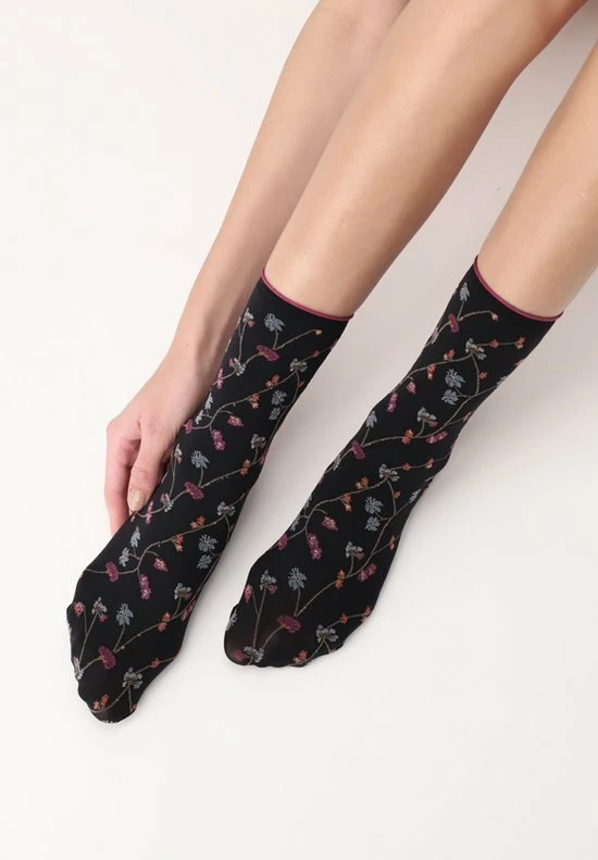 Dekkende sok met bloemenpatronen die geinspireerd zijn op bloemen uit de Italiaanse kunst.