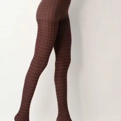 Dekkende panty met een pied de poule motief, afgewerkt met een contrasterende zwarte tailleband.