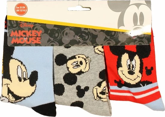 Beste Pirce π₯ POPMERCH Mickey Mouse Kids 3 Paar Sokken Set Blauw/Grijs/Rood π