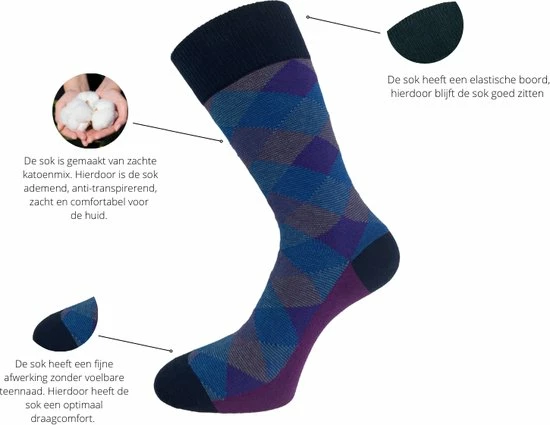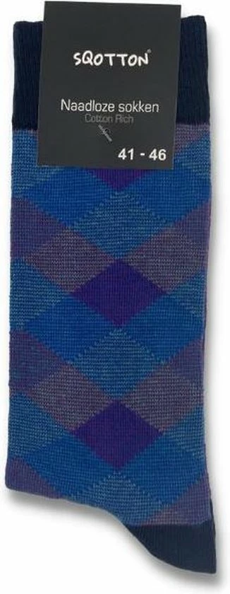 Vrolijke SQOTTON sokken met ruit print. Deze naadloze sokken met print hebben een hoog draagcomfort en zijn daarom ideaal voor dagelijks gebruik. De sokken zijn gemaakt van een zachte katoenmix. Hierdoor zijn de sokken ademend, anti-transpirerend en comfortabel voor je huid. De sokken hebben een elastische boord waardoor de sokken goed blijven zitten. Daarbij hebben deze vrolijke sokken een handgekettelde afwerking zonder voelbare naad bovenop de tenen. Een afwerking zoals deze wordt ook wel naadloos genoemd. Deze naadloze sokken met print zijn unisex, geschikt voor zowel dames als heren. De sokken worden per paar geleverd verkrijgbaar in de maten 36-40 en 41-46.